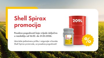 Shell Spirax promocija Iskoristite promotivno razdoblje i ostvarite dodatne pogodnosti uz kupnju SPIRAX proizvoda. Promocijski period: 16.02. – 31.03.2026. Kupnjom 1 bačve (209 L) SHELL SPIRAX S4 TXM na poklon dobivate SHELL RIMULA R4 15W40 20 L i Shell Rimula tregerice GRATIS! Gratis proizvodi uključeni u kampanju su Rimula R4 X ili R4 L. Više…